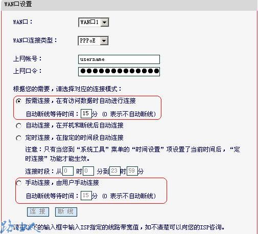 路由器在进行PPPOE拨号设置时,都支持按需连接的方式。该方式下,路由器不会自动进行PPPOE拨号,当网络中...